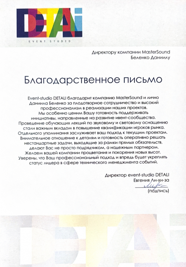 Компания MasterSound® / «МастерСаунд» основана в 2004 году Даниилом Беленко. На данный момент является одной из ведущих компаний по техническому оснащению / обеспечению мероприятий в Новосибирске и одной из крупнейших прокатных компаний Сибири, которая специализируется на технической организации, предоставлении профессионального шоу оборудования "под ключ", а также предлагает индивидуальные решения. Гарантия качества, соблюдение сроков исполнения, парк оборудования под любые запросы и бюджеты. Пожалуй, «МастерСаунд» - это лучшая компания и лучшее решение! ДОВЕРЯЙТЕ ПРОФЕССИОНАЛАМ – ПОЛУЧАЙТЕ ЯРКИЕ ВПЕЧАТЛЕНИЯ!
